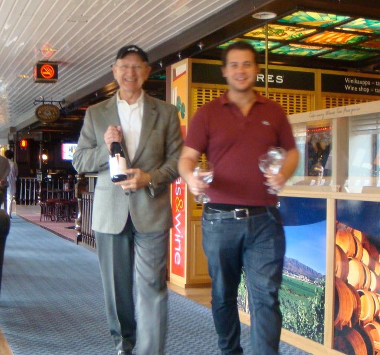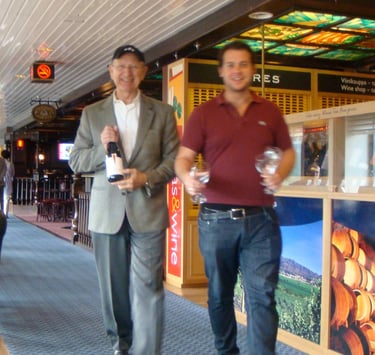 My grandfather and I, a little out of focus, but in yet another moment where smiles and wine come together.